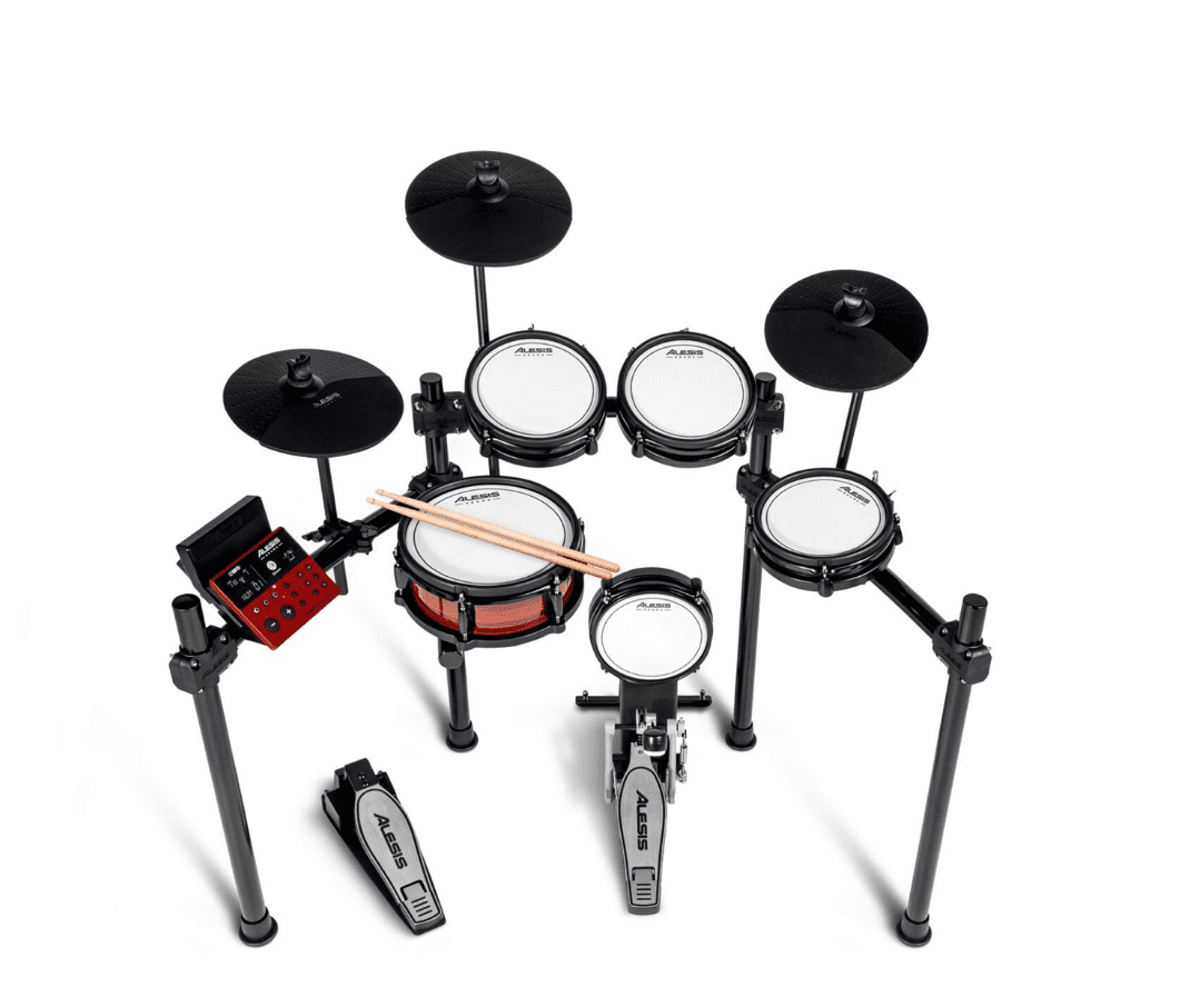 Parches de malla (Mesh): Todos los tambores tienen parches de malla ultra silenciosos que se sienten como una batería real y no molestan a los vecinos.